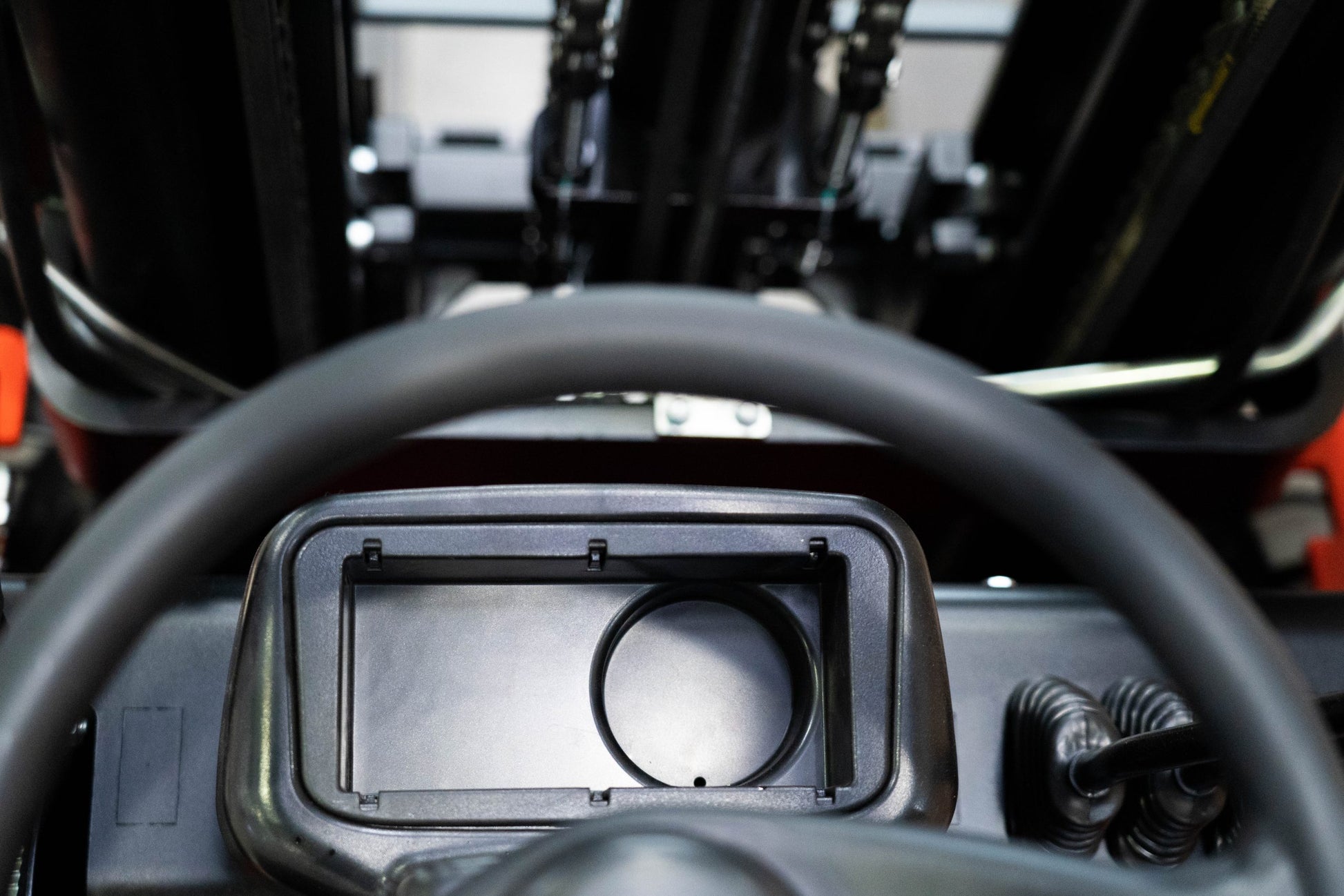 Kompakte Bauhöhe und etwas Wenderadius machen manövrierstarken Einsatz möglich. Gute Sicht durch den Mast, einfache Bedienung und charakteristische Ausstattung machen das Arbeiten sicher und komfortabel.