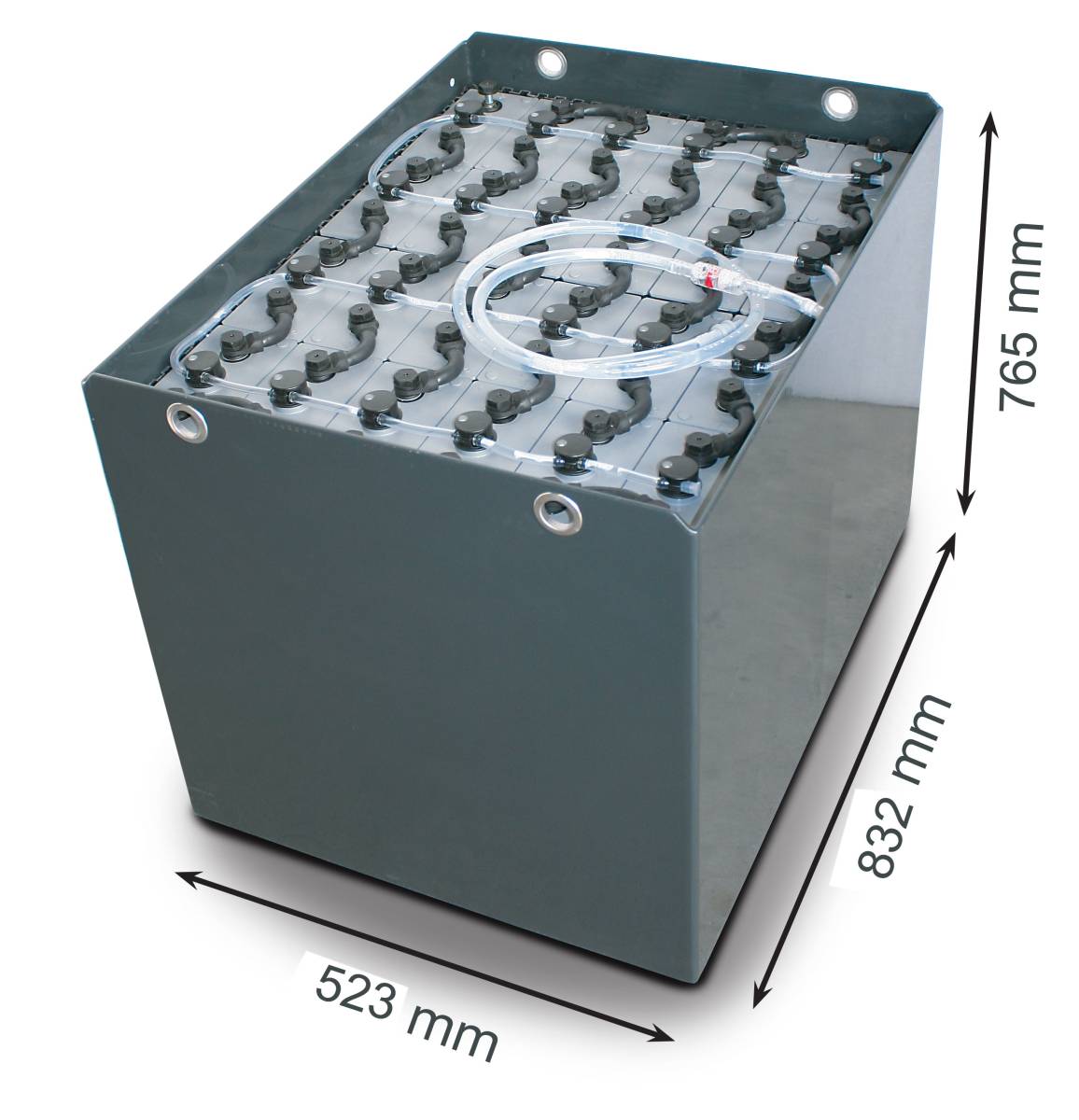 48V Gabelstaplerbatterie 4 PzS 620 Ah DIN A (832 * 523 * 784mm L/B/H) Trog 57017020 inkl. Aquamatik